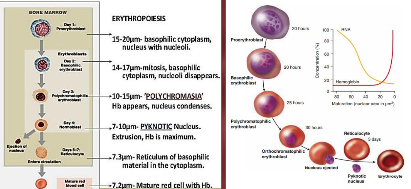 - The origin and maturation of cells are termed, erythropoiesis, granulopoiesis, monocytopoiesis, and thrombocytopoiesis.
