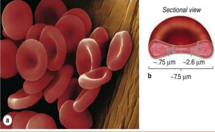 - Nonnucleated biconcave disks that are surrounded by a membrane and filled with hemoglobin and some enzymes.