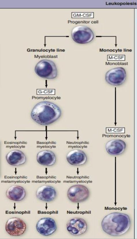 - Granulocyte-monocyte lineage - granulocytes and monocytes.