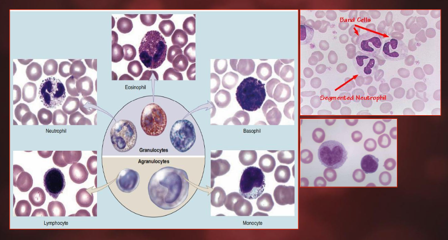 - Band cell - Nucleus elongates further and represents a horse shoe. Nucleus starts to segment.